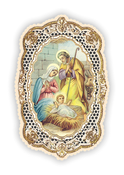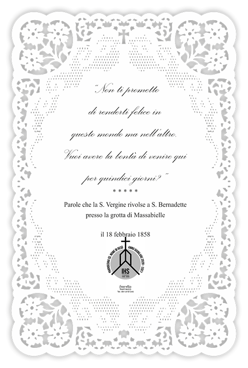 Santino con ricamo modello Betania a taglio laser con personalizzazione completa fronte e retro sia dell’immagine, sia della preghiera.